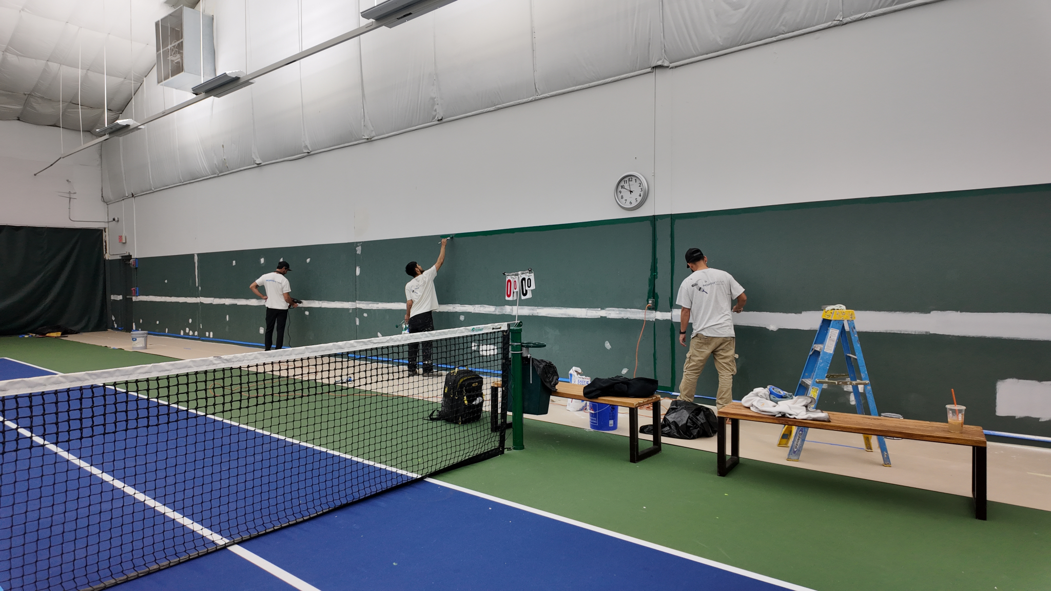 After sanding, patching, and prepping every surface, we applied multiple thin coats for consistent coverage. The Hunter Green walls came alive under the court lighting, reviving the space with vibrancy and depth. Players notice when a space feels fresh. Even subconsciously. That sensory upgrade enhances the entire indoor experience.